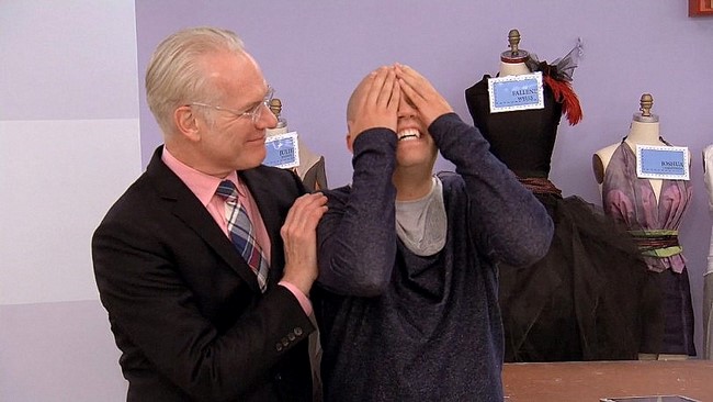 Joshua picks up Win #2 by managing his team so well through tears and forced servitude. Anya's dress, sewn by Becky and inspired by Josh's eyebrows will be available to the masses and bought by people that look like Anya. Becky's poor short and tight and lumpy number will look on it longingly, wishing it, too, could have been worn by a beauty queen and near porn star. Wah wah I'm not dowdy wahhh. Joshua's outfit says fuck you all. I"m a netted vest, bitch. I don't care what you say.
